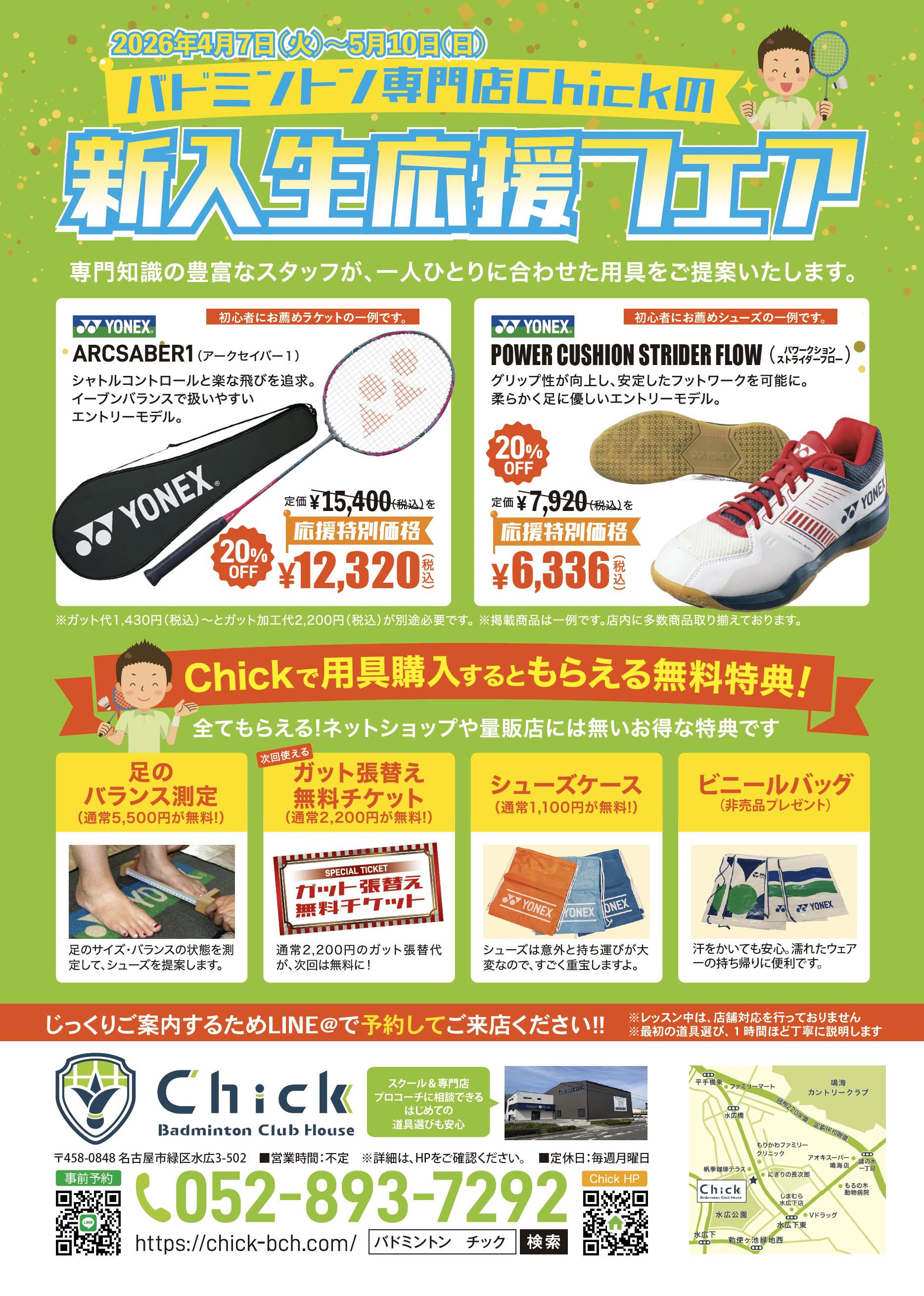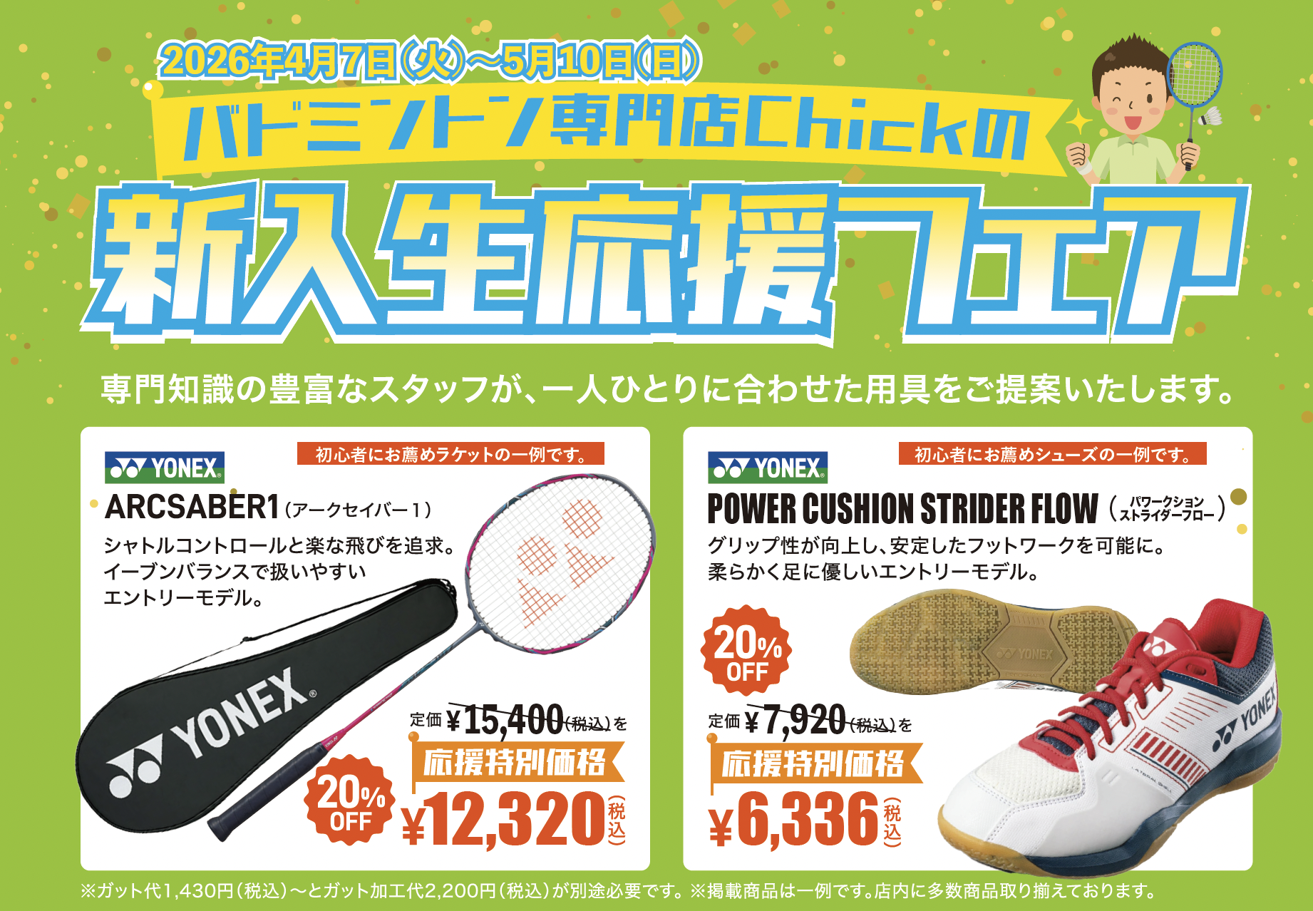 新入生フェア開催中!ラケット・シューズ選びはご予約がおすすめです