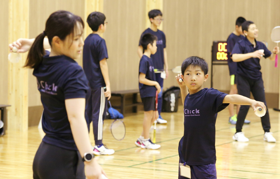 バドミントンスクール Chickでは、バドミントンの技術向上だけでなく、お子様が楽しみながら礼儀やマナーも身につけられるレッスンを目指しています。